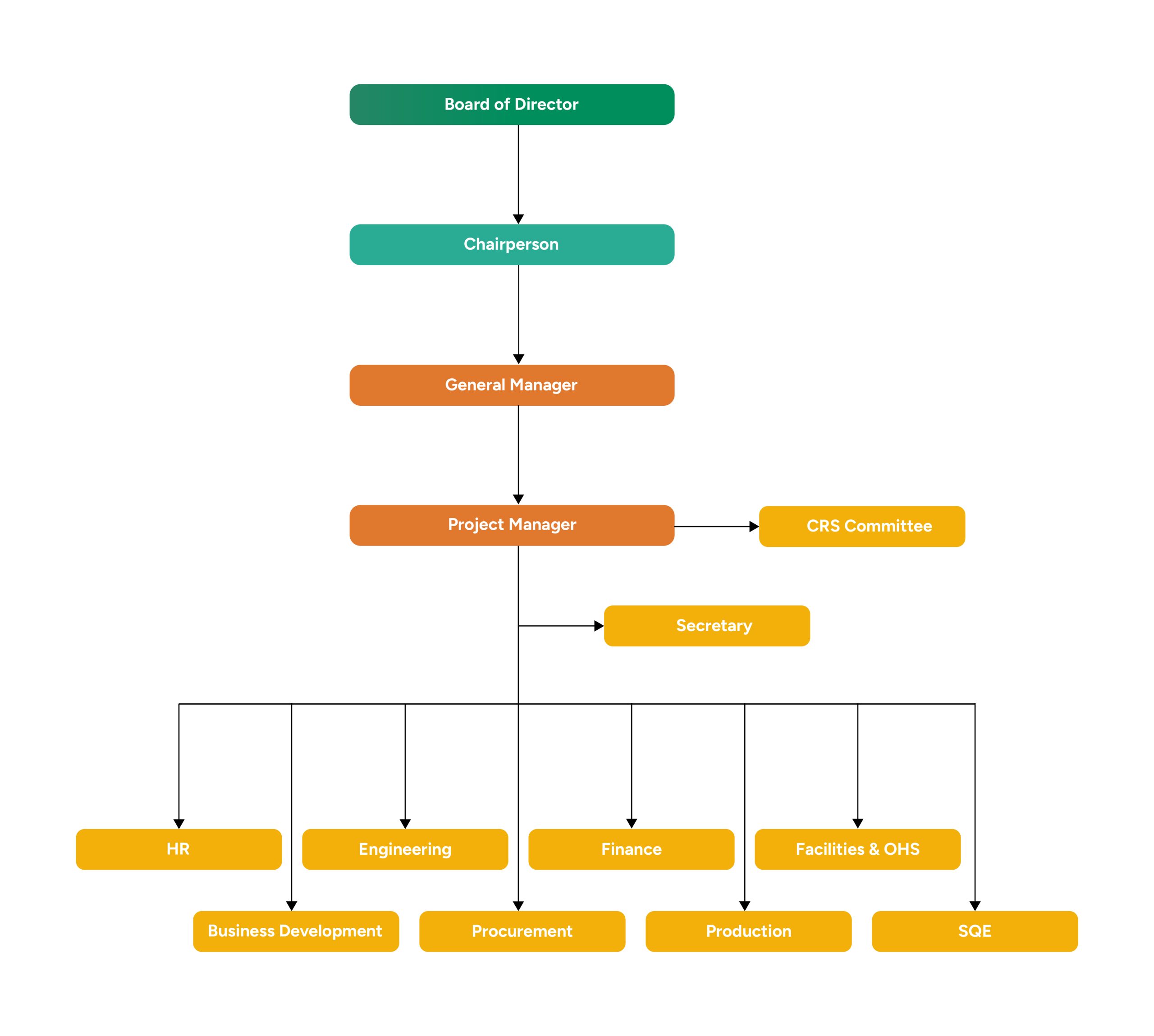 In FY2025, 2 important departments (Engineering and Business Development) have been added to be part of the sustainability governance structure. Below is the sustainability organization chart: